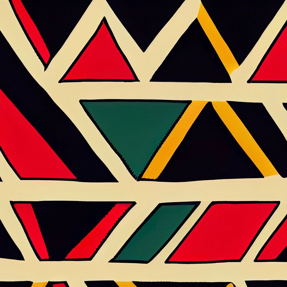 Dieses abstrakte, farbenfrohe Muster ist Teil einer Sammlung von fünfundzwanzig Mustern, die ich entworfen habe und die den Stil der Navajo-Wandteppiche mit dem der Azteken kombinieren.