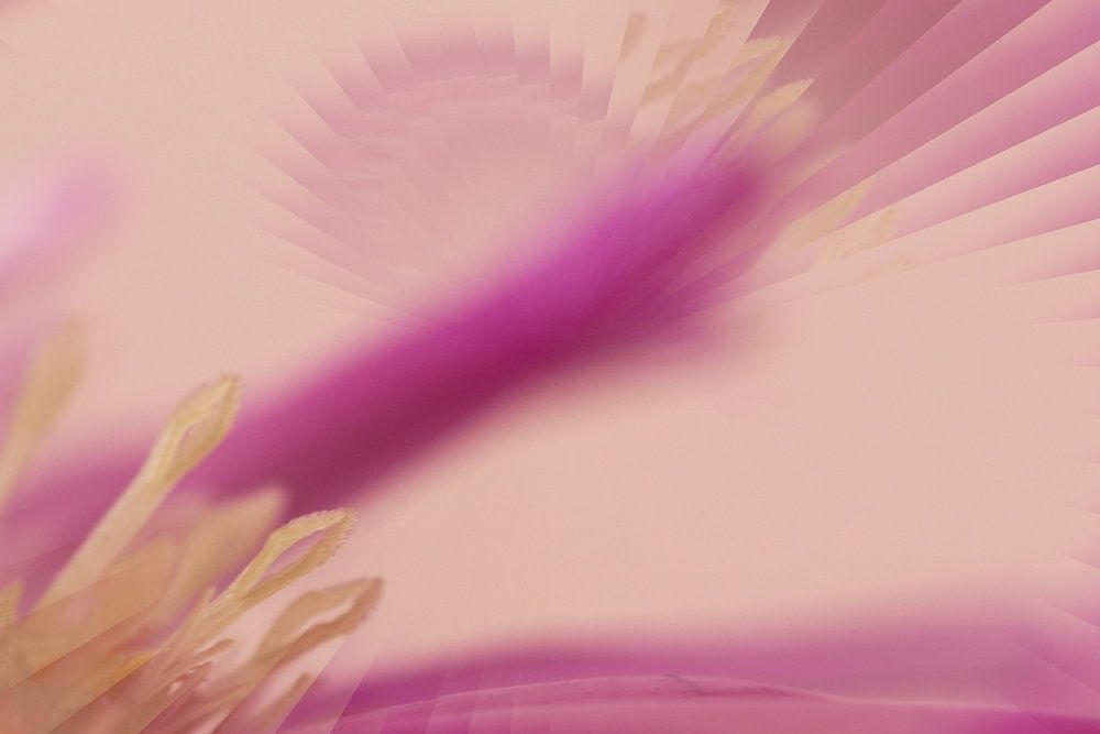 Florales, abstraktes Muster und Form in den Farben Lila, violett und Gelb