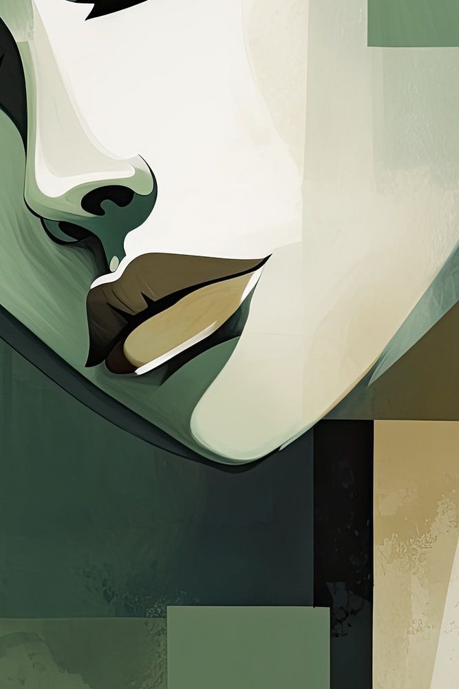 Abstraktes weibliches Gesicht in Grüntönen