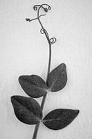 Ein Zweig vor einer weißen Wand. Schwarz-Weiß-Fotografie.