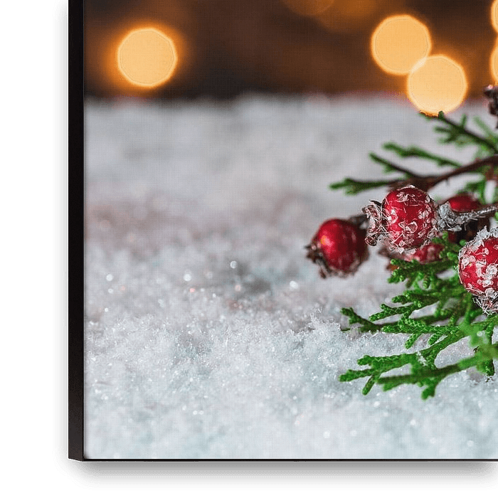 Bestelle das Foto Adventszeit mit Kerze und traditioneller Dekoration auf Schnee von Alex Winter als Reproduktion auf Leinwand, Alu-Dibond, als Poster, Fototapete oder Acrylglasbild.