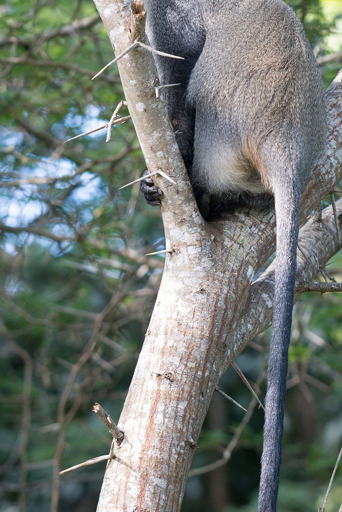 Affe in einem Baum in Südafrika, insbesondere ein so langer Schwanz.