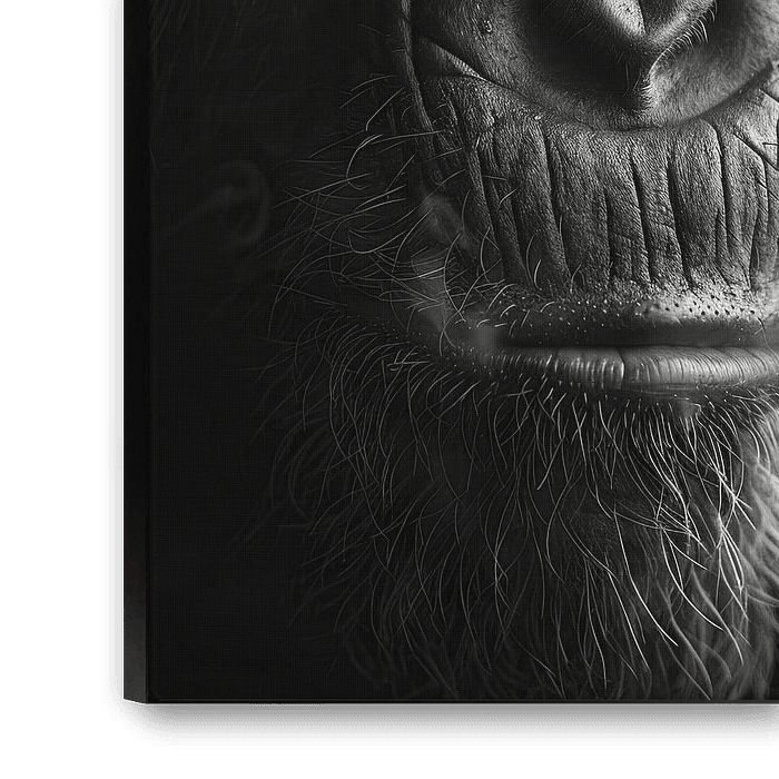 Starkes monochromes Bild eines Affen mit einer Zigarette, der menschliche Züge aufweist.