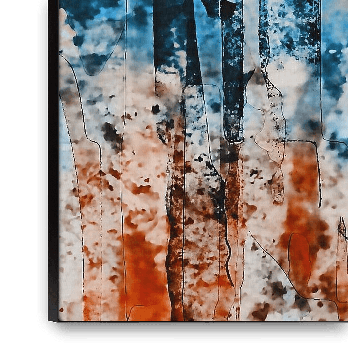 Ihre gewählte Kunst auf Leinwand, gespannt in einem Aluminiumrahmen. Schnell und einfach austauschbar für eine frische Ausstrahlung und ganz nach Ihren Wünschen.