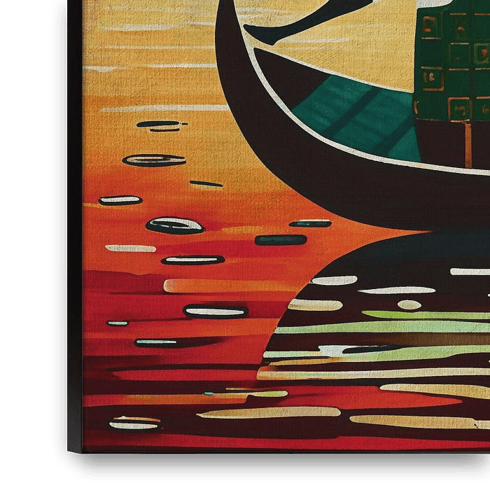 Bestelle dieses abstrakte Wandbild Afrikanische Fischer betrachten die Stadt mit Erstaunen von Jan Keteleer als Reproduktion auf Leinwand, Alu-Dibond, als Poster, Fototapete oder Acrylglasbild.