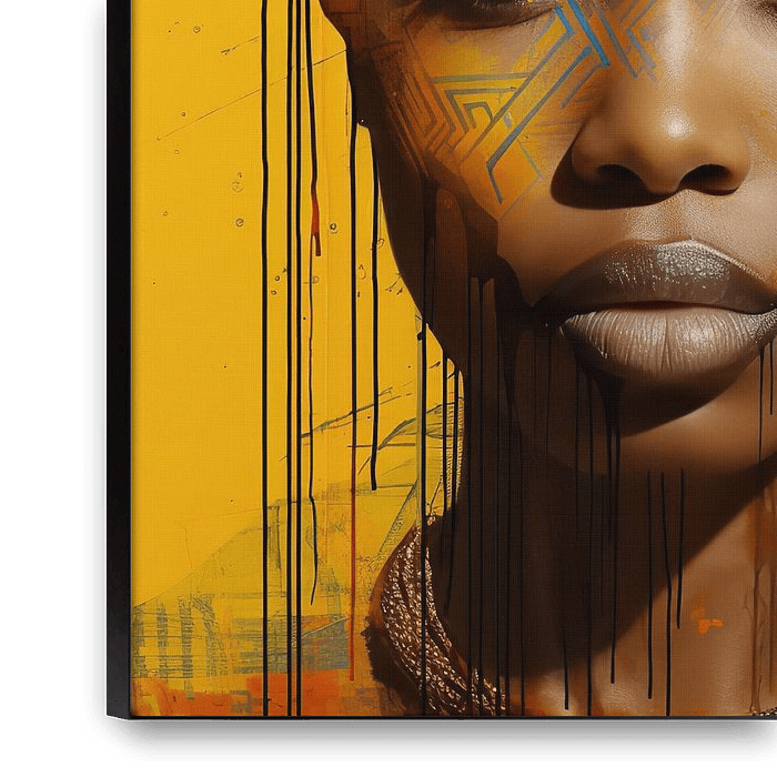 Dieses Porträt einer afrikanischen Frau in gelber Farbe mit Linien schmückt die Wand und ist ein echter Hingucker! Afrikanische Frauen sind stark, stolz und schön.