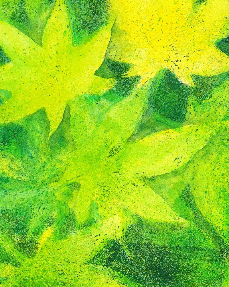 Ahornblätter in Grün ist ein Acrylbild im Hochformat der Künstlerin Karen Kaspar. Es zeigt viele Blätter eines japanischen Ahornbaums in kräftigen Grüntönen wie leuchtendem Gelbgrün und dunklem Smaragdgrün.