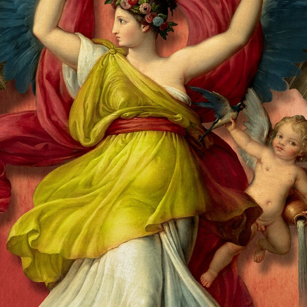 Meine farbenfrohe Adaption des neoklassizistischen Gemäldes "Allegorie der Morgenröte (La Aurora)", das um 1819 von dem spanischen Maler Juan Antonio Ribera (1779-1860) geschaffen wurde.