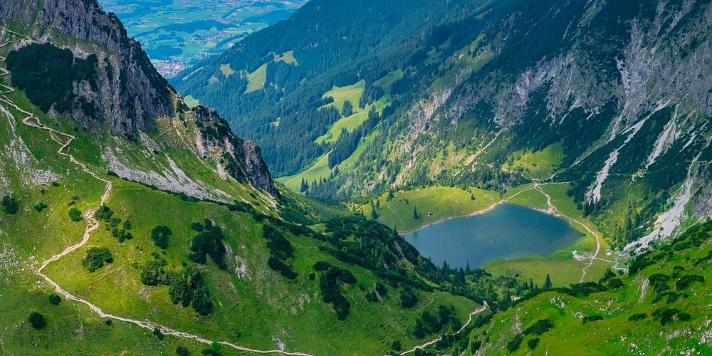 Unterer Gaisalpsee, dahinter das Rubihorn, 1957 m, Entschenkopf, 2043m, Allgäuer Alpen, Allgäu, Bayern, Deutschland, Europa