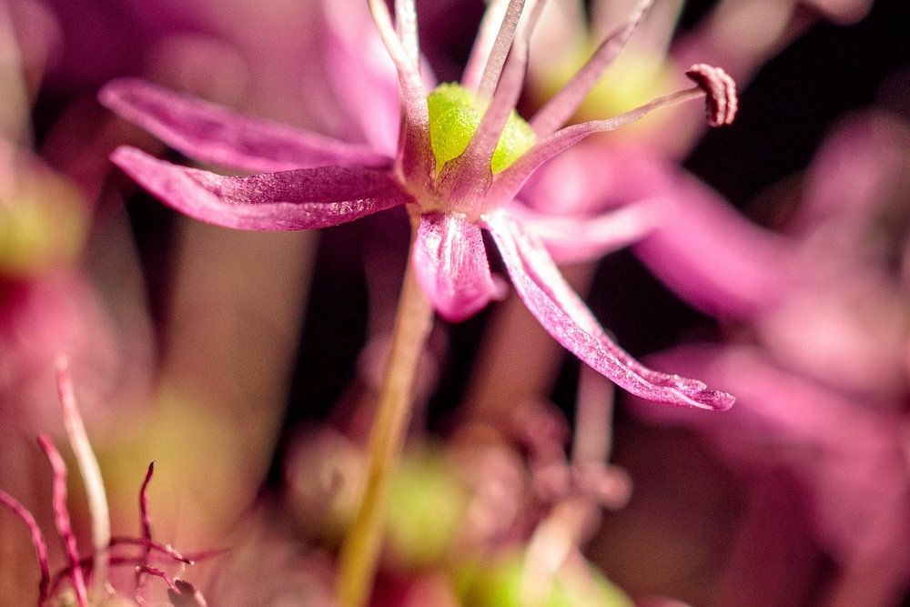 Detail der blühenden Zwiebel einer Allium-Pflanze.