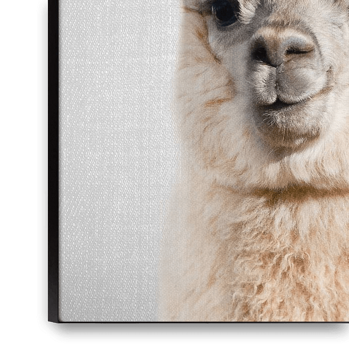 Der Wandbild-Druck „Alpaca“ zeigt ein klares, frontal aufgenommenes Porträt eines flauschigen Alpakas in warmen Beige-, Creme- und Hellbrauntönen. Die satter, lockige Fellstruktur verleiht dem Bild Tiefe und Wärme, während der sanfte Ausdruck eine ruhige und einladende Atmosphäre schafft. Dank seiner minimalistischen Gestaltung eignet…