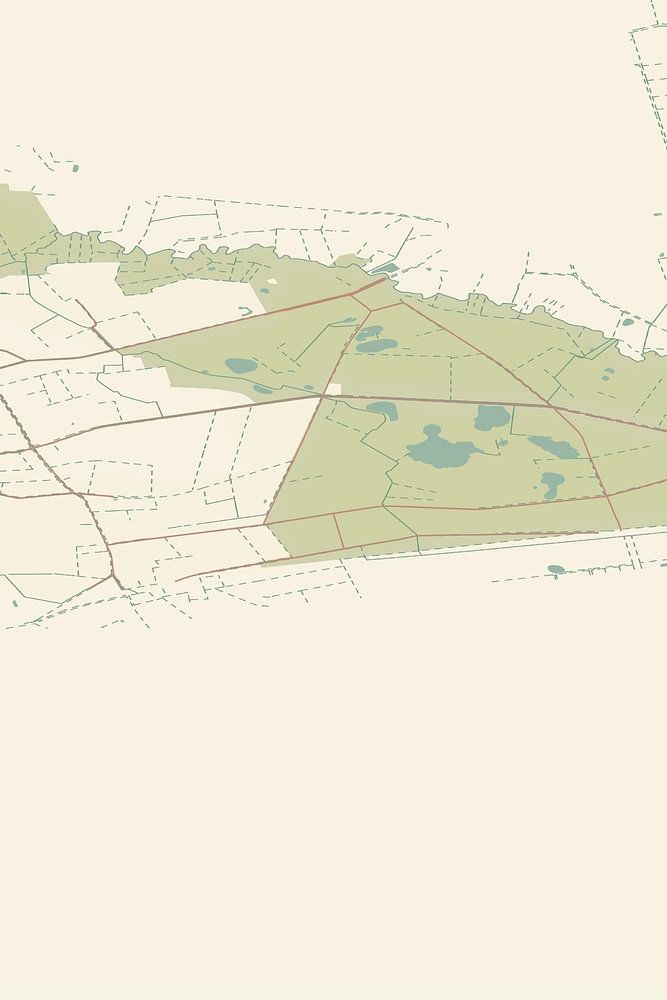 Retrokarte von Castelre, gelegen in der Gemeinde Baarle-Nassau, Provinz Nordbrabant. Die Karte zeigt öffentliche Straßen, Wasserläufe (Seen, Bäche und Gräben) und Wälder in und um Castelre. Darüber hinaus enthält die Karte die Koordinaten von Castelre.