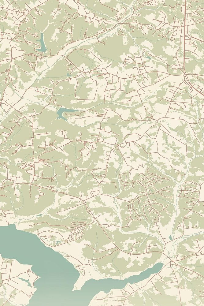 Die Karte ist ein echter Blickfang in Ihrem Zuhause, perfekt für Liebhaber von Vintage-Dekoration. Wälder, Straßen, Seen, Flüsse und Bäche sind mit farbigen Akzenten dargestellt und lassen Sie von der Pracht und Eleganz dieses Ortes staunen.