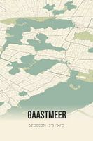 Retrokarte von Gaastmeer, gelegen in der Gemeinde Sudwest-Fryslan, Provinz Fryslan. Die Karte zeigt öffentliche Straßen, Wasserläufe (Seen, Bäche und Gräben) und Wälder in und um Gaastmeer. Darüber hinaus enthält die Karte die Koordinaten von Gaastmeer.