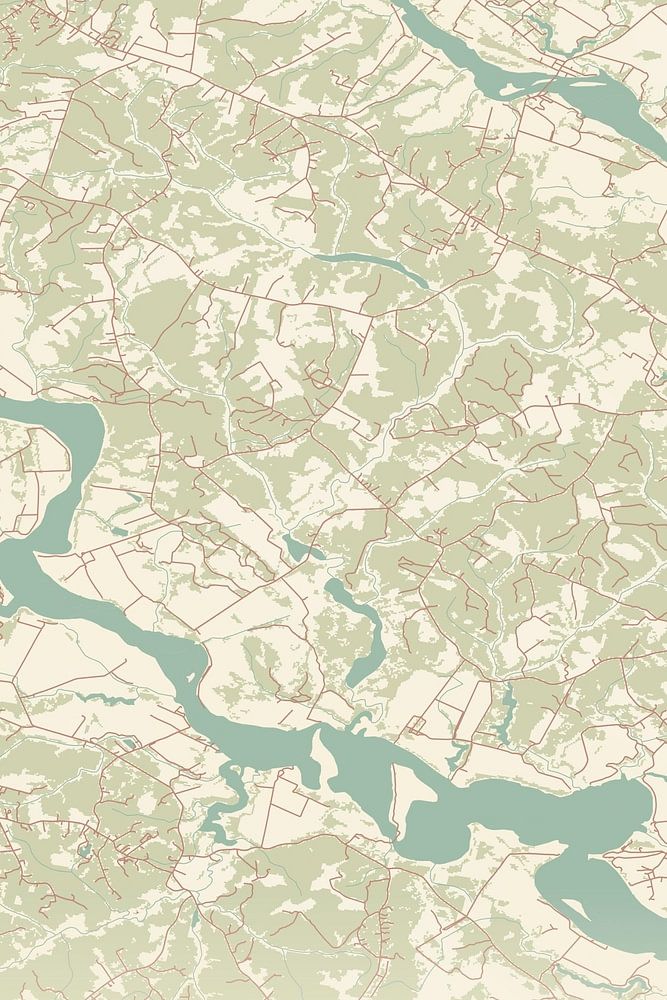 Die Karte ist ein echter Blickfang in Ihrem Zuhause, perfekt für Liebhaber von Vintage-Dekoration. Wälder, Straßen, Seen, Flüsse und Bäche sind mit farbigen Akzenten dargestellt und lassen Sie von der Pracht und Eleganz dieses Ortes staunen.