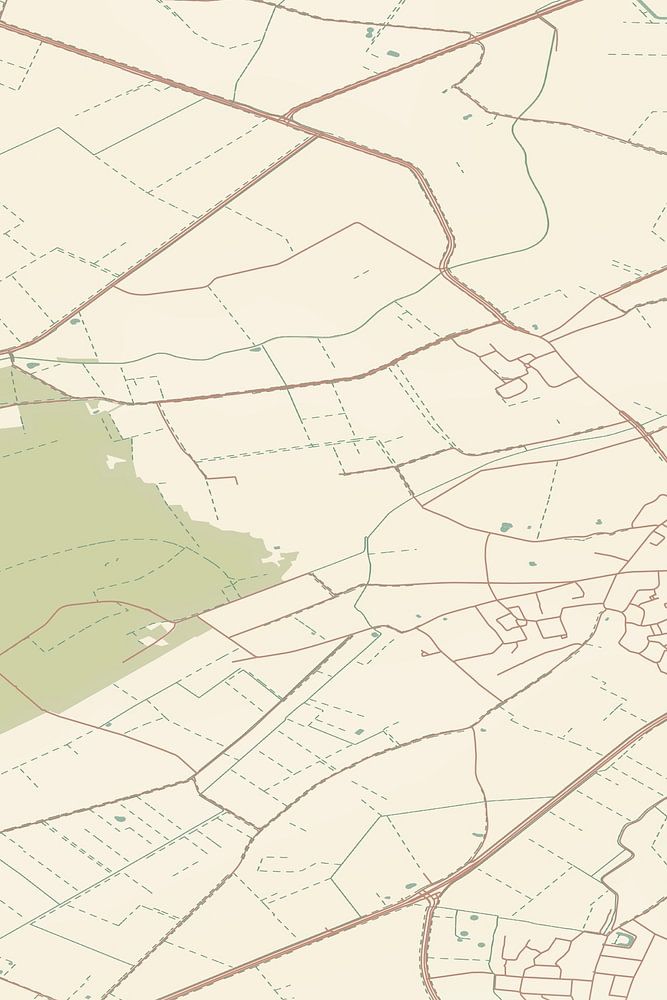 Retrokarte von Ledeacker, gelegen in der Gemeinde Sint Anthonis, Provinz Nordbrabant. Die Karte zeigt öffentliche Straßen, Wasserläufe (Seen, Bäche und Gräben) und Wälder in und um Ledeacker. Darüber hinaus enthält die Karte die Koordinaten von Ledeacker.