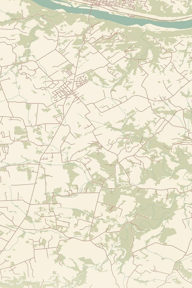 Die Karte ist ein echter Blickfang in Ihrem Zuhause, perfekt für den Liebhaber von Vintage-Dekoration. Wälder, Straßen, Seen, Flüsse und Bäche sind mit farbigen Akzenten dargestellt und lassen Sie von der Pracht und Eleganz dieses Ortes staunen.