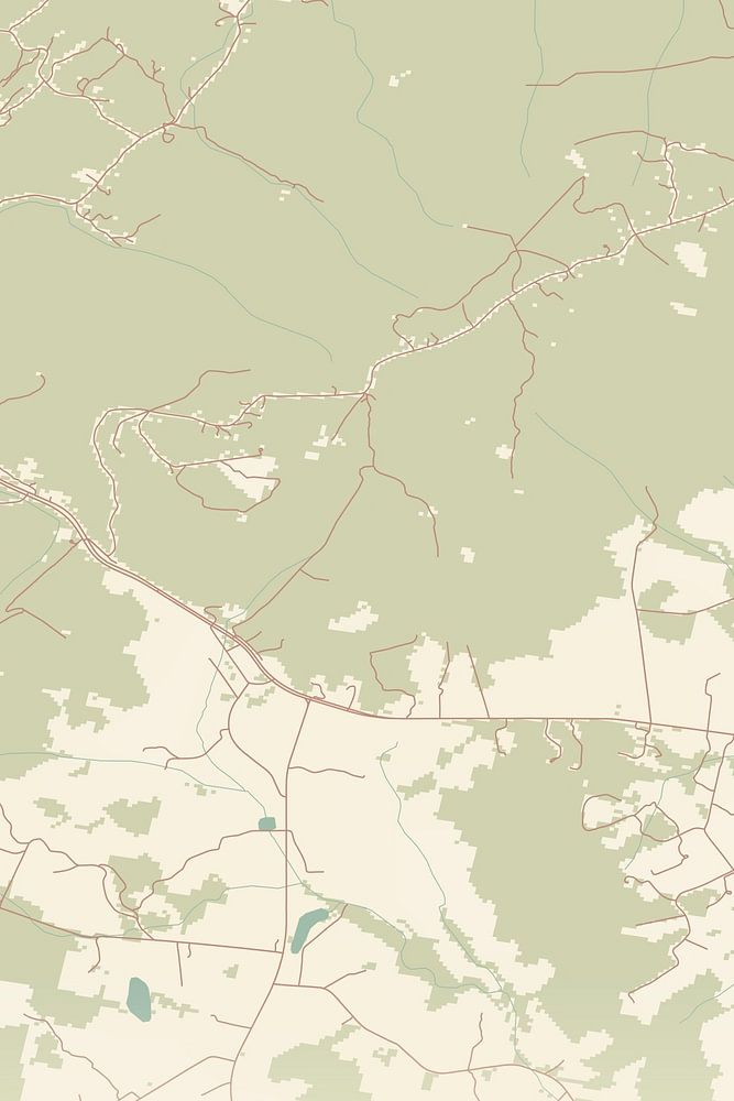 Die Karte ist ein echter Blickfang in Ihrem Zuhause, perfekt für Liebhaber von Vintage-Dekoration. Wälder, Straßen, Seen, Flüsse und Bäche sind mit farbigen Akzenten dargestellt und lassen Sie von der Pracht und Eleganz dieses Ortes staunen.