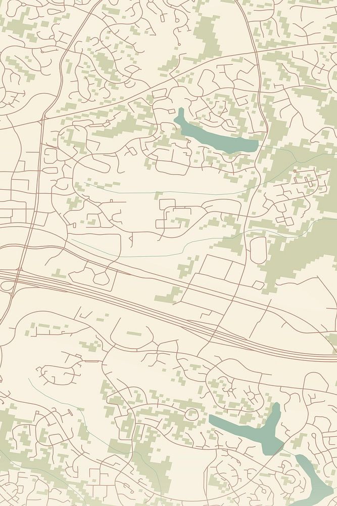 Die Karte ist ein echter Blickfang in Ihrem Zuhause, perfekt für Liebhaber von Vintage-Dekoration. Wälder, Straßen, Seen, Flüsse und Bäche sind mit farbigen Akzenten dargestellt und lassen Sie von der Pracht und Eleganz dieses Ortes staunen.