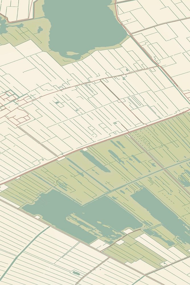 Retrokarte von Sintjohannesga, gelegen in der Gemeinde De Fryske Marren, Provinz Fryslan. Die Karte zeigt öffentliche Straßen, Wasserläufe (Seen, Bäche und Gräben) und Wälder in und um Sintjohannesga. Darüber hinaus enthält die Karte die Koordinaten von Sintjohannesga.