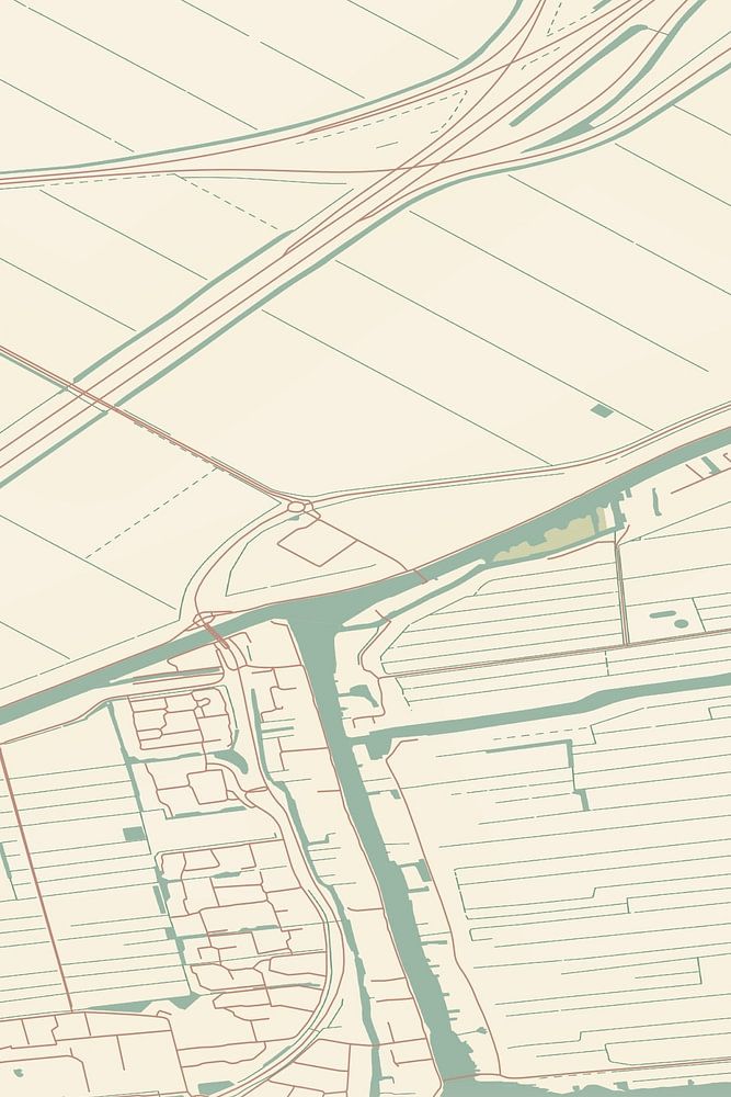 Retrokarte von Weteringbrug, gelegen in der Gemeinde Haarlemmermeer, Provinz Nordholland. Die Karte zeigt öffentliche Straßen, Wasserläufe (Seen, Bäche und Gräben) und Wälder in und um Weteringbrug. Darüber hinaus enthält die Karte die Koordinaten von Weteringbrug.