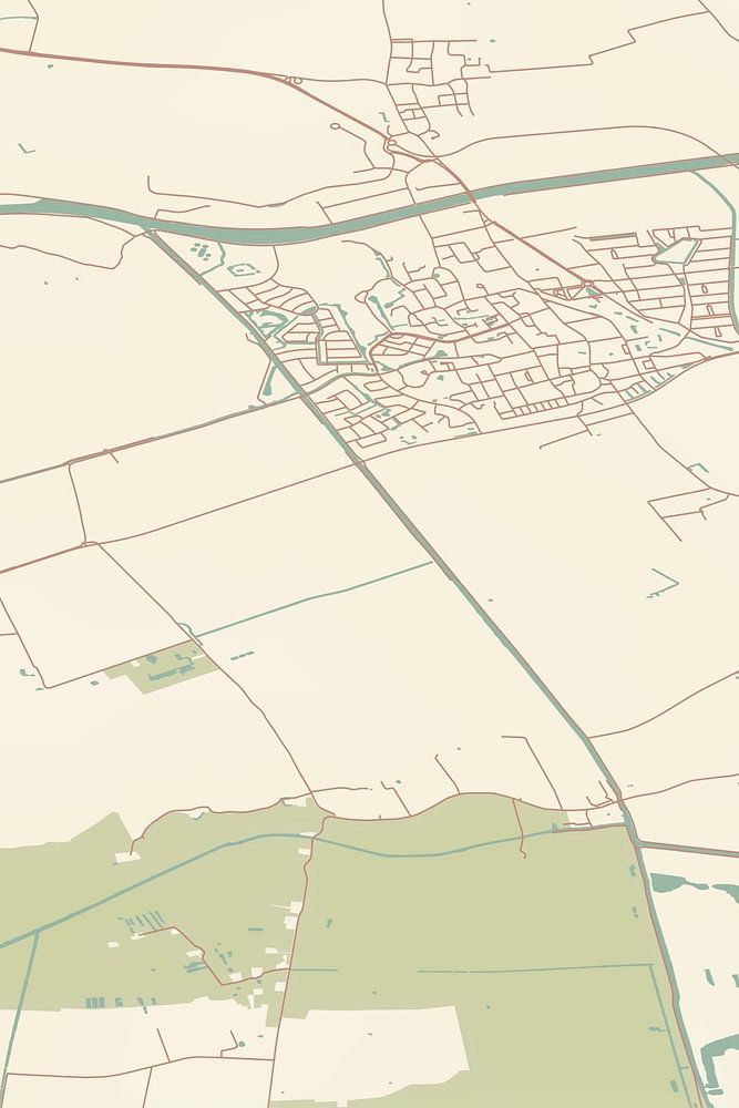 Retrokarte von Zuidhorn, gelegen in der Gemeinde Westerkwartier, Provinz Groningen. Die Karte zeigt öffentliche Straßen, Wasserläufe (Seen, Bäche und Gräben) und Wälder in und um Zuidhorn. Darüber hinaus zeigt die Karte die Koordinaten von Zuidhorn.