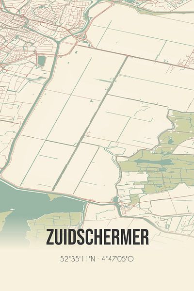 Bestelle das digitale Kunst Bild Alte Karte von Zuidschermer (Nordholland) von Ortsdrucke als Reproduktion auf Leinwand, Alu-Dibond, als Poster, Fototapete oder Acrylglasbild.