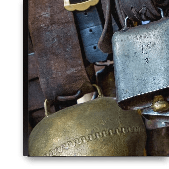 Alte Kuhglocken auf dem Flohmarkt am Bürkliplatz in Zürich, Schweiz.