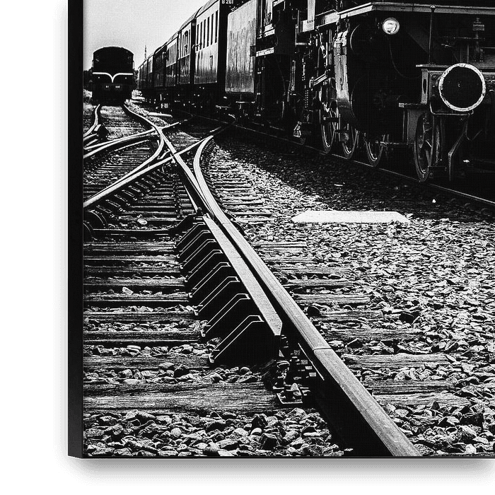 Bestelle das Foto Alter Dampfzug im schwarzen Weiß. von Lex Schulte als Reproduktion auf Leinwand, Alu-Dibond, als Poster, Fototapete oder Acrylglasbild.