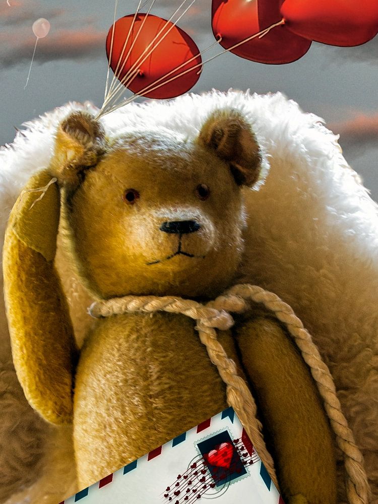 Ballonherzen, Luftballons, Rote Herzen, Valentin, Valentinstag, Liebe, Kindergeburtstag, Kinderzimmer, Kindermotiv, Rot, Stofftiere, Schaffell, Kälte, Winter, Antiquitäten, Rarität, Spielzeug, Kinder, Freunde, Liebe, Wolken, Himmel, Raritäten, Phantasie, Retro