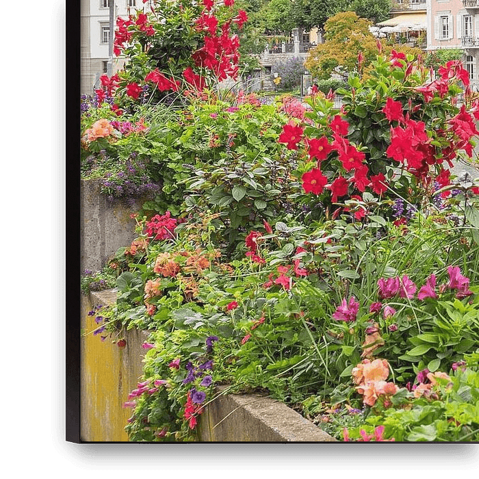 Altstadt von Thun an der Aare, Blumenschmuck am Ufer.