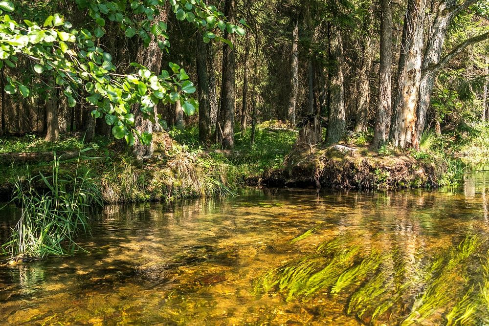 Landschaft am Fluss Czarna Hancza, bei Kanufahrern beliebter Nebenfluss der Memel in der polnischen Woiwodschaft Podlachien, Polen, Europa | landscape at the popular canoeing river Czarna Hancza, Podlaskie Voivodeship, Poland, Europe