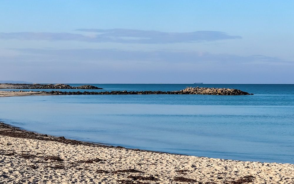 Am Ostseestrand an einem sonnigen Tag im Urlaub