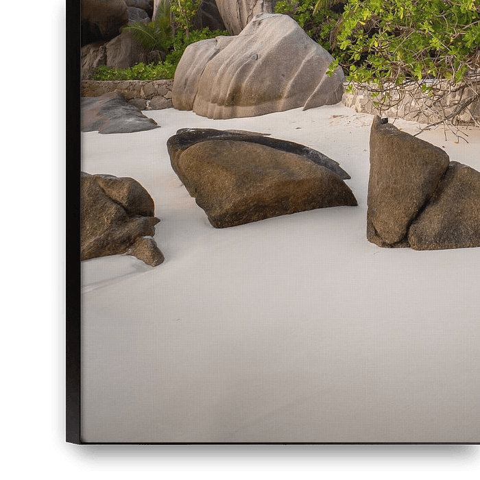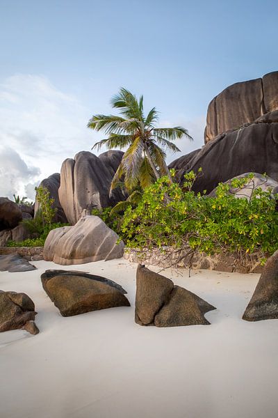 Bestelle das Foto Am Traumstrand auf La Digue (Seychellen) von t.ART als Reproduktion auf Leinwand, Alu-Dibond, als Poster, Fototapete oder Acrylglasbild.