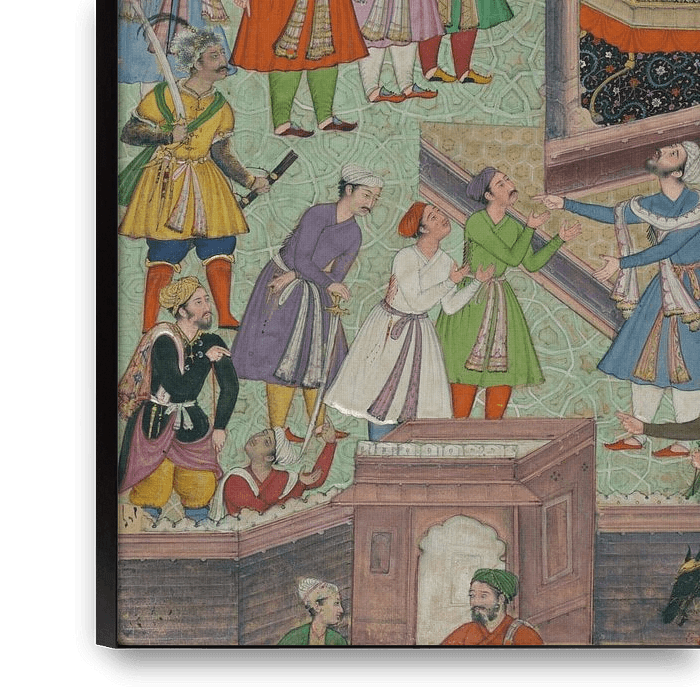 Bestelle diese Malerei Amir Khusraw, Brudermord bezeugt die Treue zweier Freunde - 1597-1598 von Atelier Liesjes als Reproduktion auf Leinwand, Alu-Dibond, als Poster, Fototapete oder Acrylglasbild.