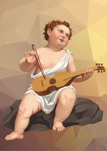 Bestelle dieses moderne Wandbild Amor mit einer Geige Low Poly von Low Profile als Reproduktion auf Leinwand, Alu-Dibond, als Poster, Fototapete oder Acrylglasbild.