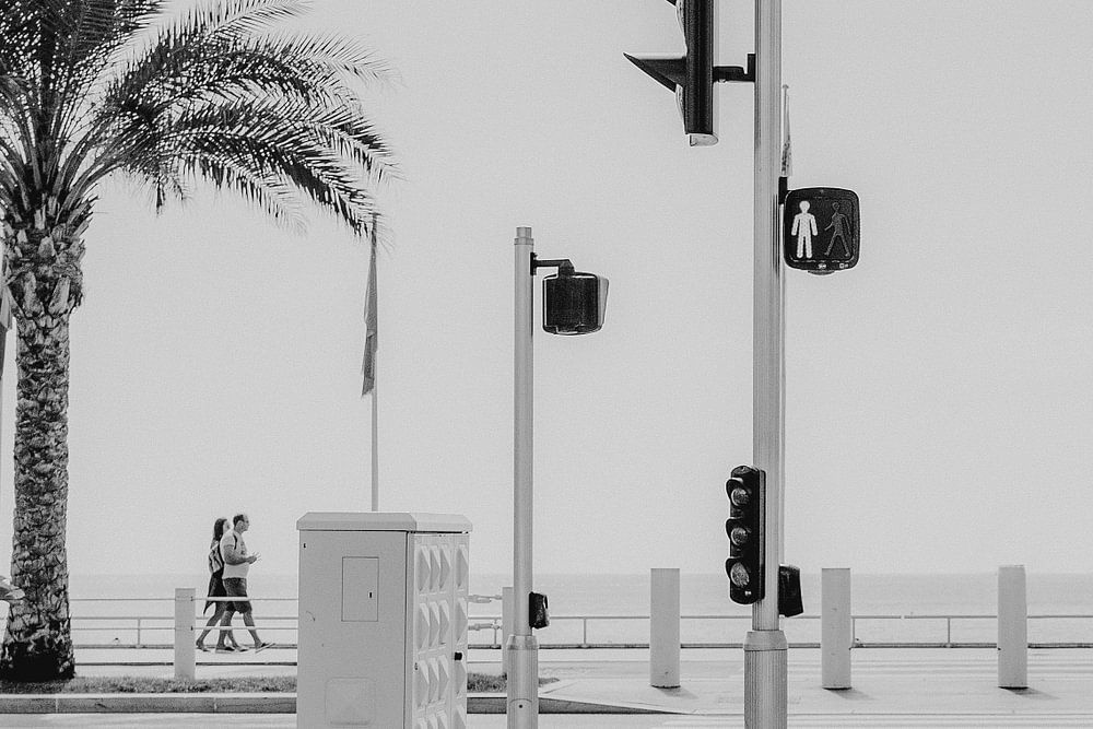 Das altmodische Warten darauf, dass die Ampel auf Grün schaltet. Und dann gleitet Amore ins Bild. Boulevard des Anglais Nizza.