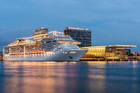Amsterdam verwelkomt cruiseschip MSC Splendida. De MSC Splendida is het grootste cruiseschip dat Amsterdam bezoekt. Met haar 18 decks, 313m lengte en ruim 4000 passagiers trekt dit cruiseschip zeker de aandacht.