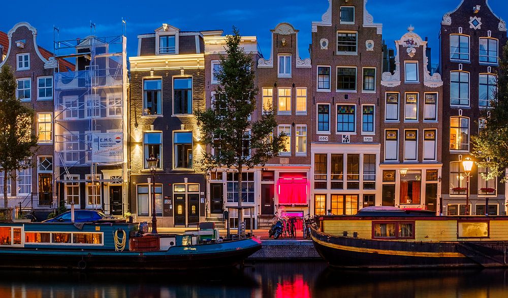 Panorama des Amsterdam Singel mit den beiden sehr berühmten, wenn nicht gar berühmten Grachtenbooten.