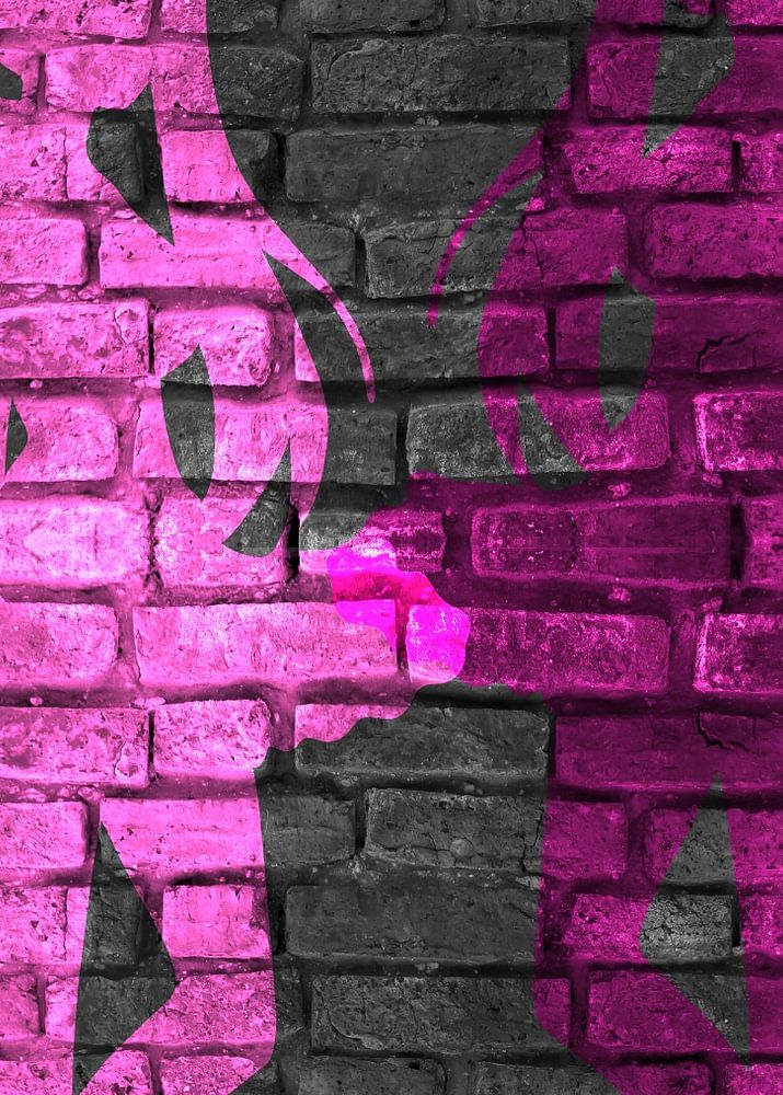 Anime Manga Style Zeichnung auf dunkler Ziegelmauer. Sehr dekoratives Geschenk für Teenager und Mädchen, die Animes und Manges zeichen und mögen.
