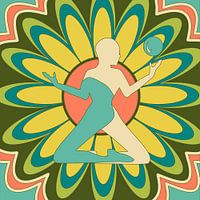Empfangen und Loslassen werden als eine einzige Person dargestellt, die jedoch zwei Gesichtsausdrücke aufweist: Empfangen links und Loslassen rechts. Dies ist vor einem floralen Hintergrund dargestellt. Dies ist vor einem Hintergrund im Blumenstil dargestellt. Empfangen und Loslassen werden als eine einzige Person dargestellt, jedoch…