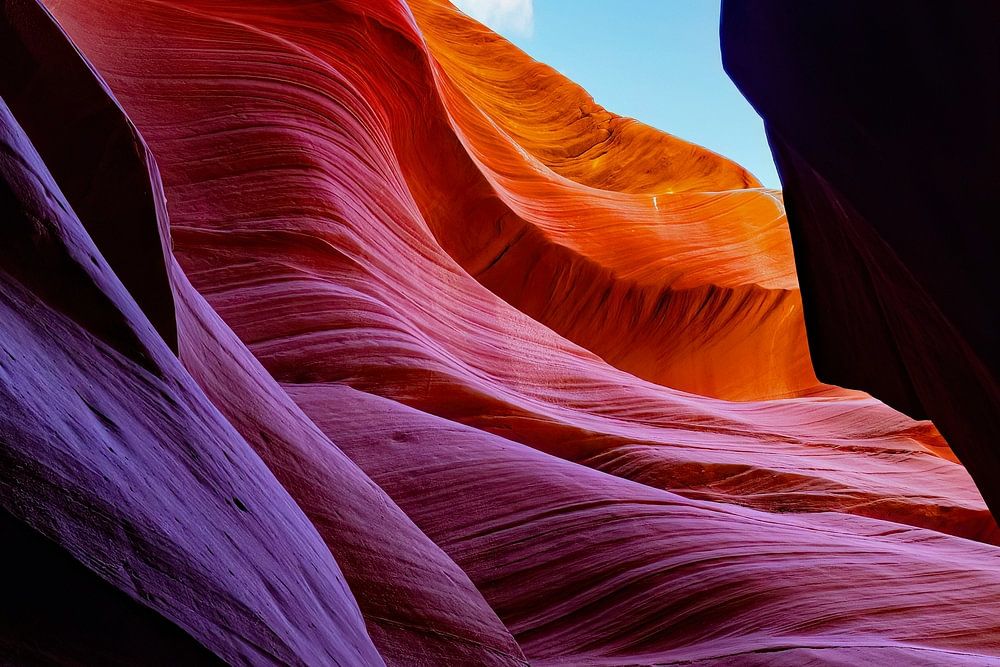 Entdecken Sie den Zauber des Antelope Canyon in Page, Arizona, eingefangen in atemberaubenden Fotos, die die ganze Pracht dieses Naturwunders zeigen. Der Antelope Canyon ist weltberühmt für seine surrealen Sandsteinschluchten, in denen Lichtstrahlen genau im richtigen Moment in den Canyon eindringen und die Wände in leuchtenden Farben erstrahlen lassen. Jedes Foto, das wir anbieten, fängt dieses einzigartige Spiel von Licht und Schatten ein und hebt die natürlichen Formen und Strukturen der Schlucht hervor.