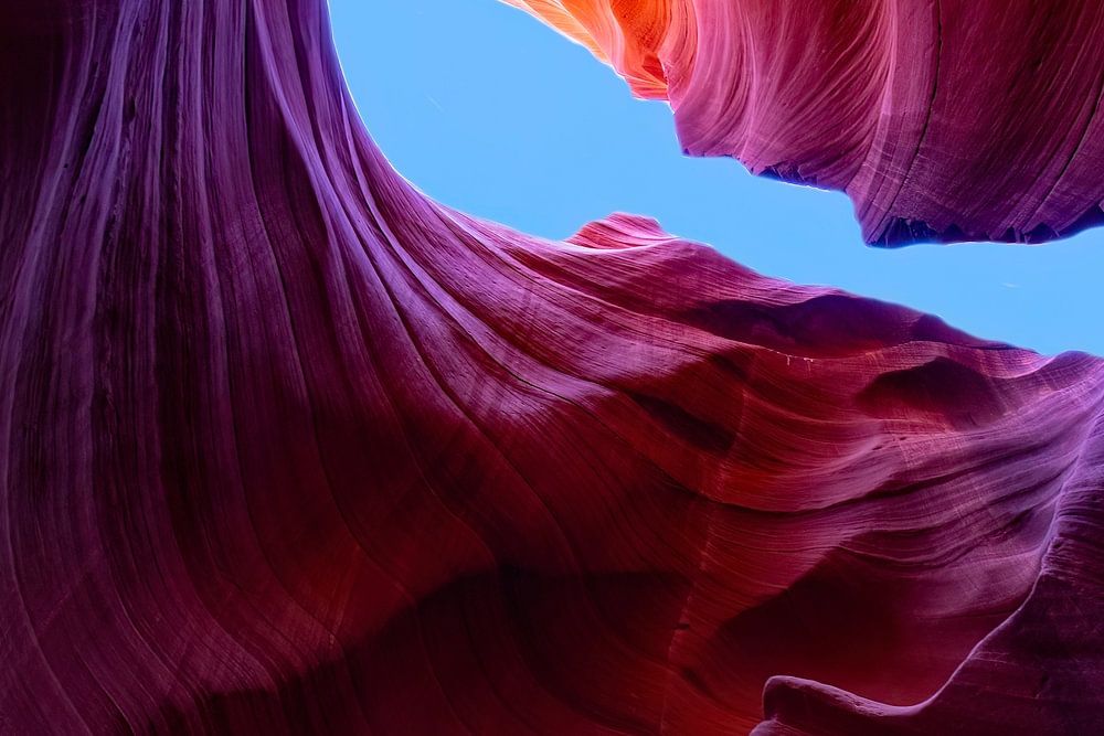 Entdecken Sie den Zauber des Antelope Canyon in Page, Arizona, eingefangen in atemberaubenden Fotos, die die ganze Pracht dieses Naturwunders zeigen. Der Antelope Canyon ist weltberühmt für seine surrealen Sandsteinschluchten, in denen Lichtstrahlen genau im richtigen Moment in den Canyon eindringen und die Wände in leuchtenden Farben erstrahlen lassen. Jedes Foto, das wir anbieten, fängt dieses einzigartige Spiel von Licht und Schatten ein und hebt die natürlichen Formen und Strukturen der Schlucht hervor.