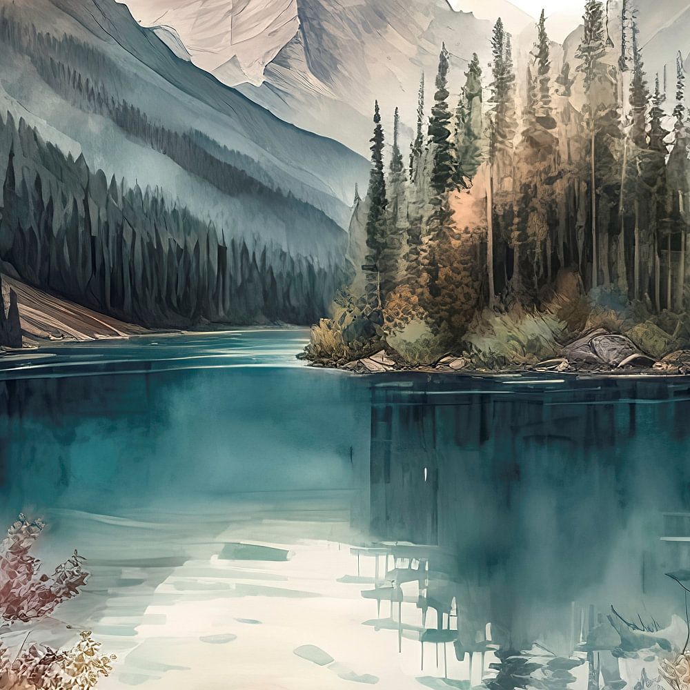 Aquarell einer Landschaft. Dieses Bild wurde mit künstlicher Intelligenz (KI) erstellt.