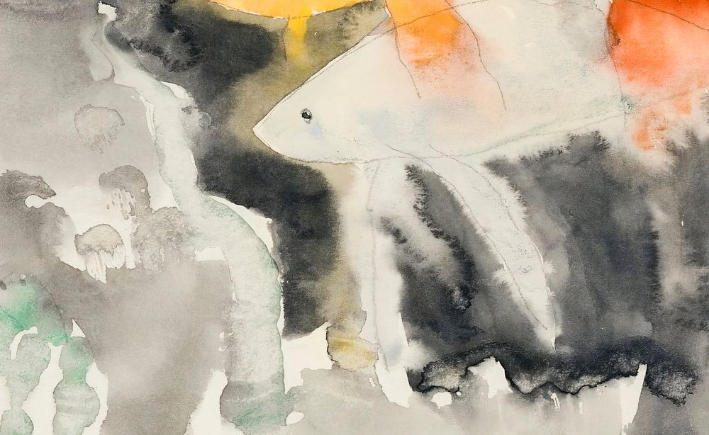 Aquarellzeichnung mit Fisch in weichen Pastellfarben.