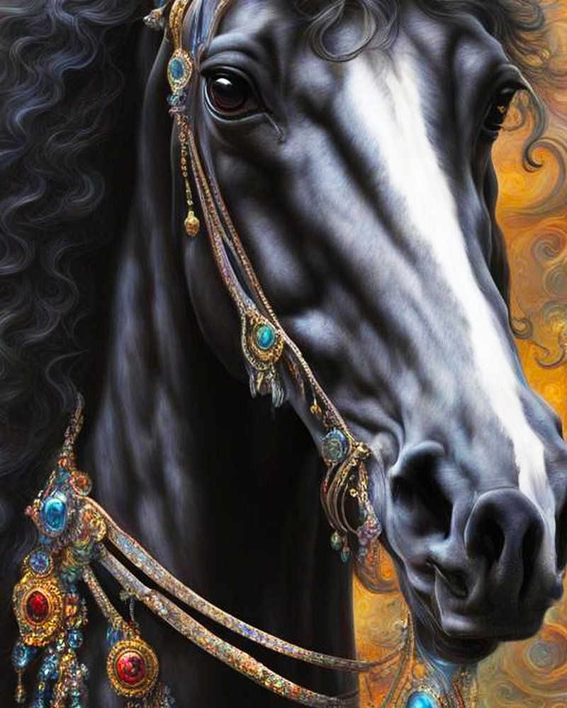 Die schönen, anmutigen und kräftigen Pferde haben mich dazu veranlasst, sie in einem farbenfrohen und phantasievollen Rahmen zu gestalten.