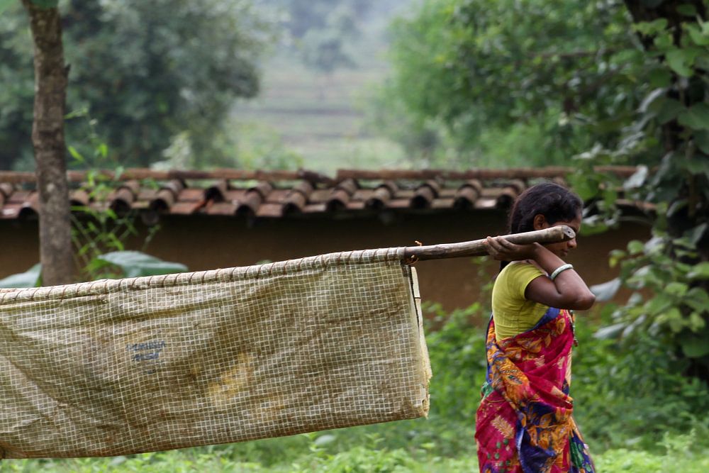 Blumen Garlands Verkäufe in IndienCora Unk Frau mit Kind vor ihrem HausCora Unk