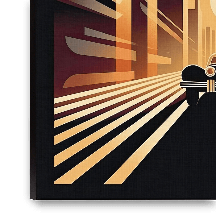 Bestelle dieses Art Deco-Wandbild Art Deco Auto Poster von Niklas Maximilian als Reproduktion auf Leinwand, Alu-Dibond, als Poster, Fototapete oder Acrylglasbild.