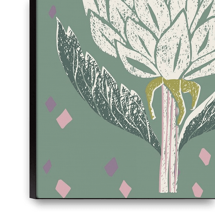 Ihre gewählte Kunst auf Leinwand, gespannt in einem Aluminiumrahmen. Schnell und einfach austauschbar für eine frische Ausstrahlung und ganz nach Ihren Wünschen.
