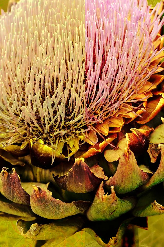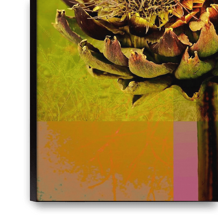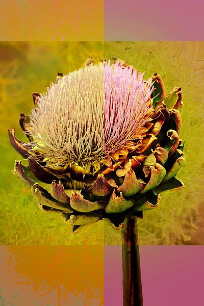 Bestelle dieses Blumen-Wandbild Artischocke in Retrofarben. von Alie Ekkelenkamp als Kunstdruck auf Leinwand, Alu-Dibond, als Poster, Fototapete oder Acrylglasbild.